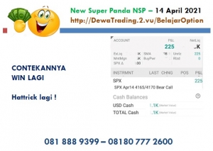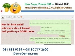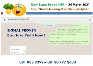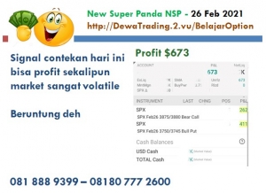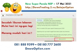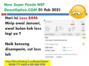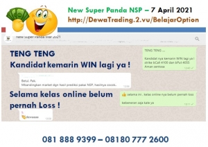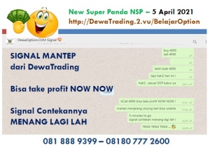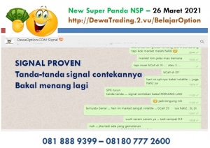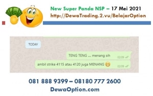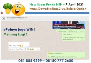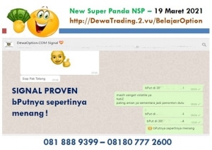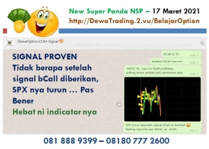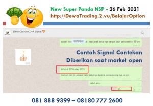 Master Option dari DewaTrading doyan memberikan contekan setiap beberapa hari sekali. Yang dimaksud contekan adalah SIGNAL ENTRY kapan masuk posisi , strike berapa , termasuk SIGNAL EXIT dan / atau REPAIR SYSTEM nya. Signal Entry diberikan melalui group WhatsApp (WA) disaksikan banyaak orang dan diberikan saat sebelum masuk posisi. Jadi bukan cerita posisi yang tiba2 sudah profit. Photo gallery menampilkan contekan yang profit dan contekan yang loss, tidak ada rekayasa karena disaksikan banyak orang. Jika ingin joint group contekan ini , silakan klik tombol disamping.