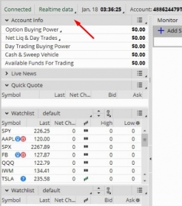 Contoh gambar tampilan ThinkOrSwim Real TimeÂ